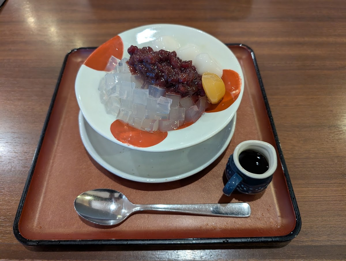 The star of the menu is undoubtedly their exquisite wagashi (Japanese sweets). Among the most recommended is the 白玉あんみつ, a beautifully presented dessert that balances the chewy texture of freshly-made white dumplings with the rich flavor of aged sweet bean paste and delicate, slippery kanten (agar jelly). Priced at approximately 900 yen, this dish is a perfect symphony of flavors and textures — the crunch of chestnuts paired with a drizzle of rich black syrup enhances its allure, making it hard to resist.